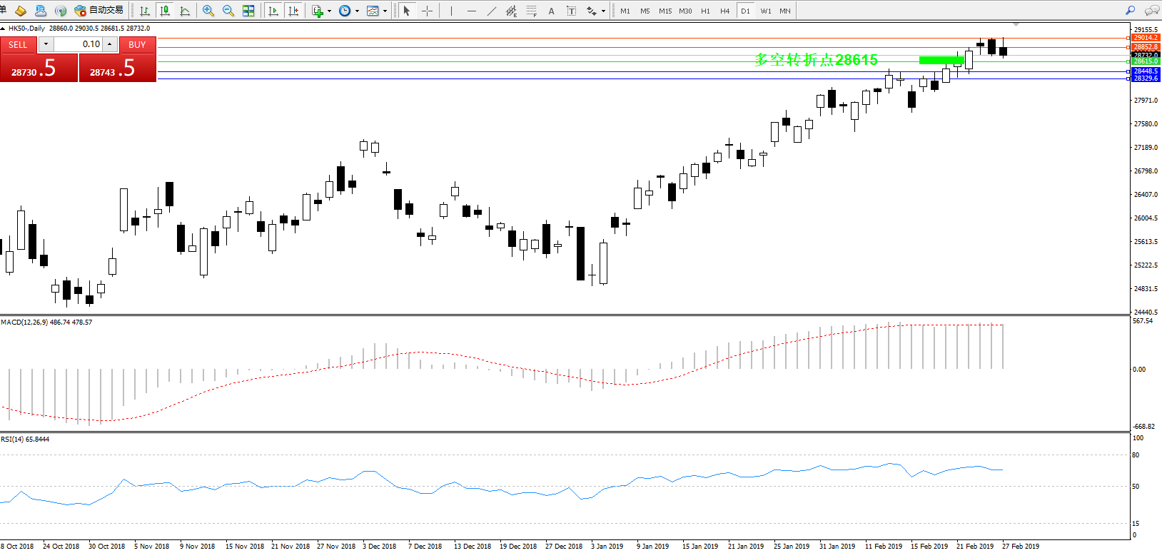 交易策略:28615上方看涨,目标28852、29014