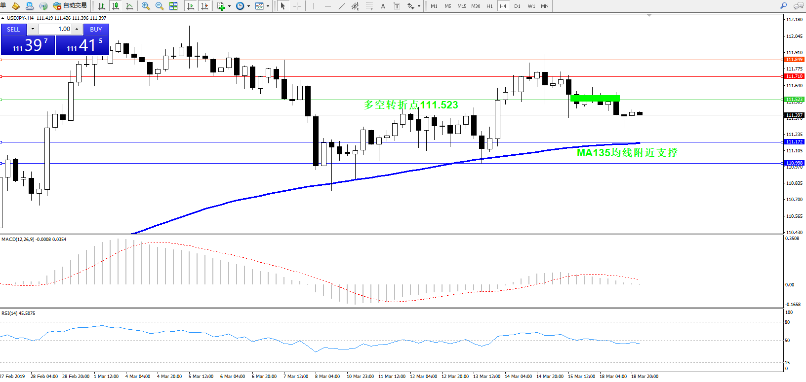 备选策略:111.523上方看涨,目标111.710111.849