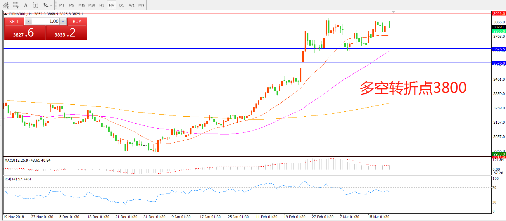 多空转折点:3800.00