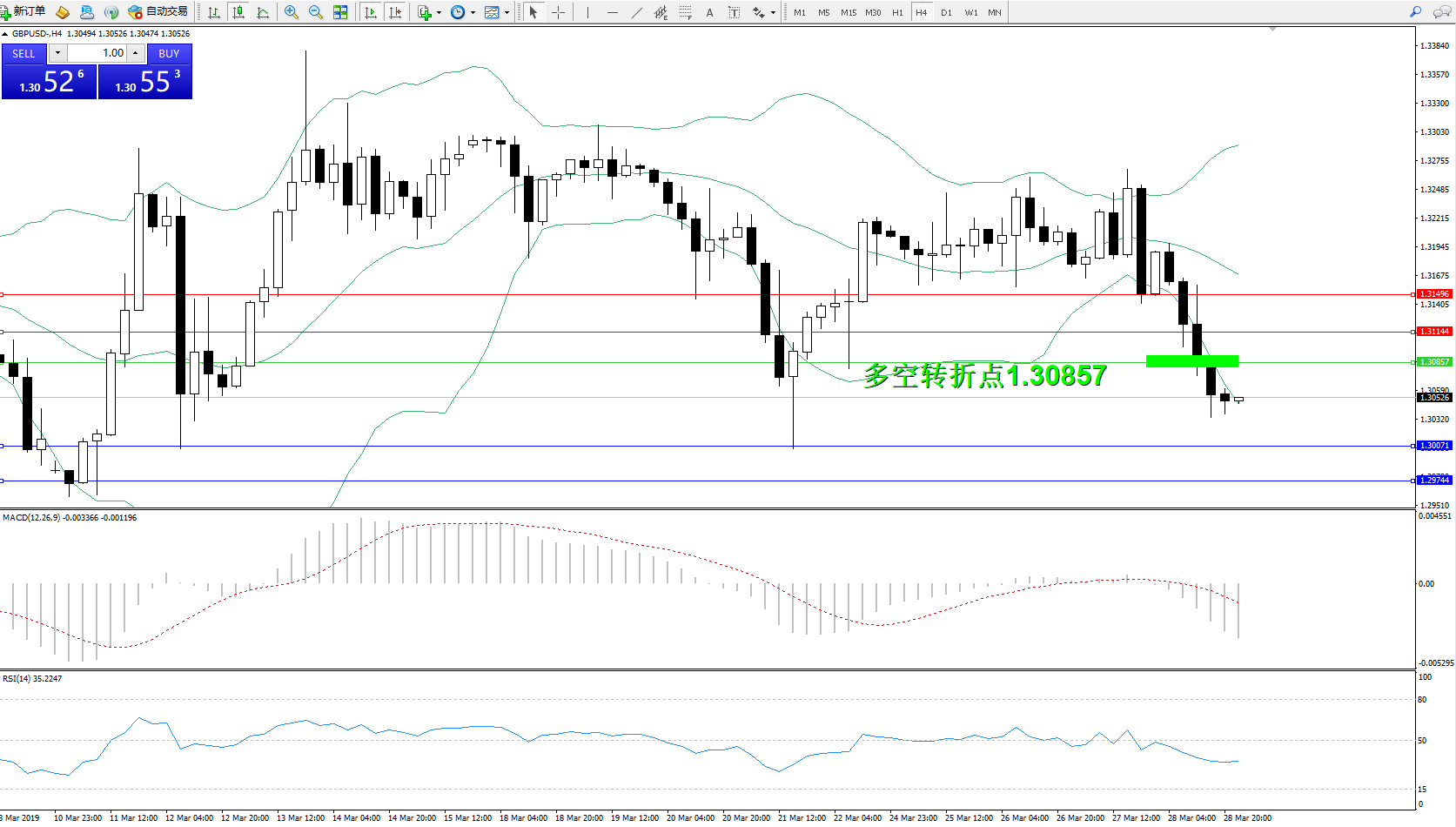 交易策略:1.30857下方看跌,目标1.300711.29744