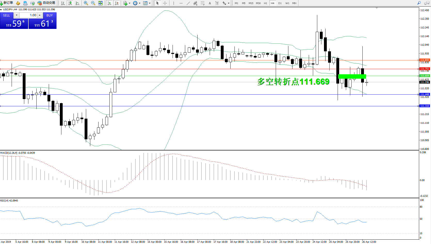 交易策略:111.669下方看跌,目标111.448、111.310