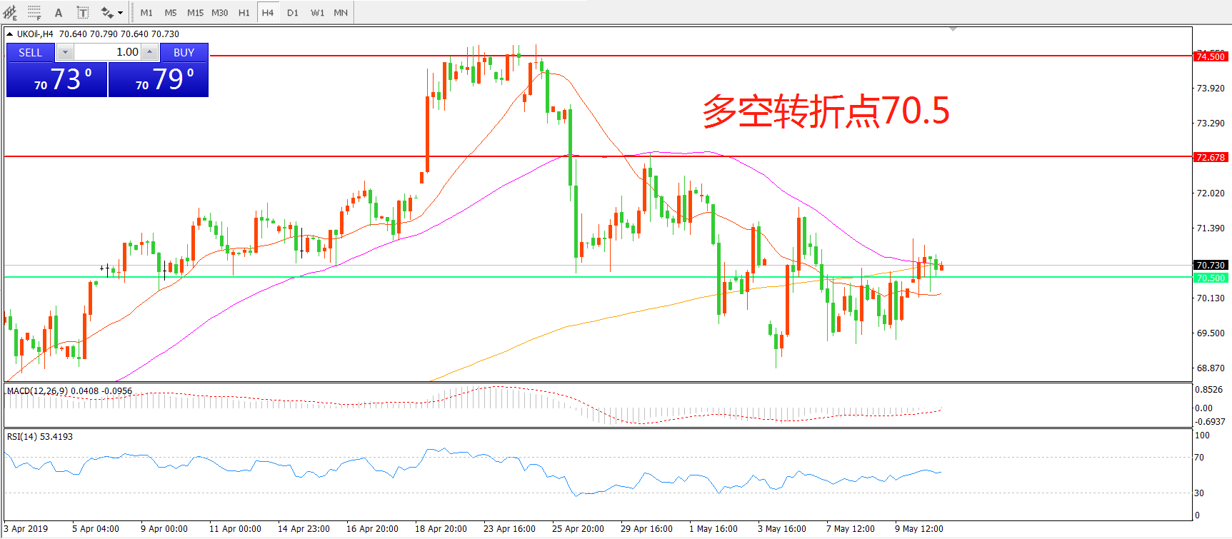 多空转折点:70.50