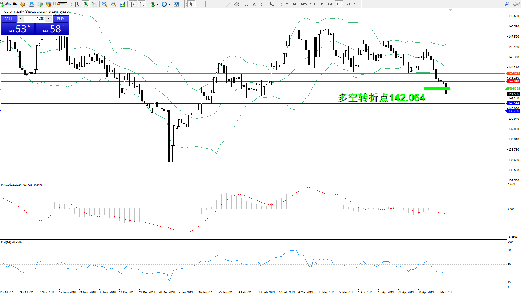 交易策略:142.064下方看跌,目标140.544、139.736