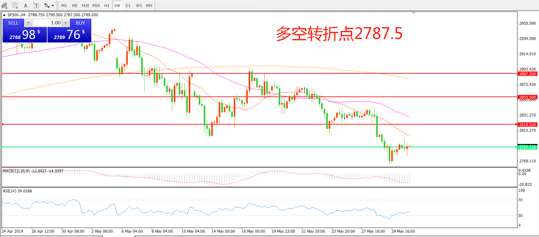 多空转折点:2787.50