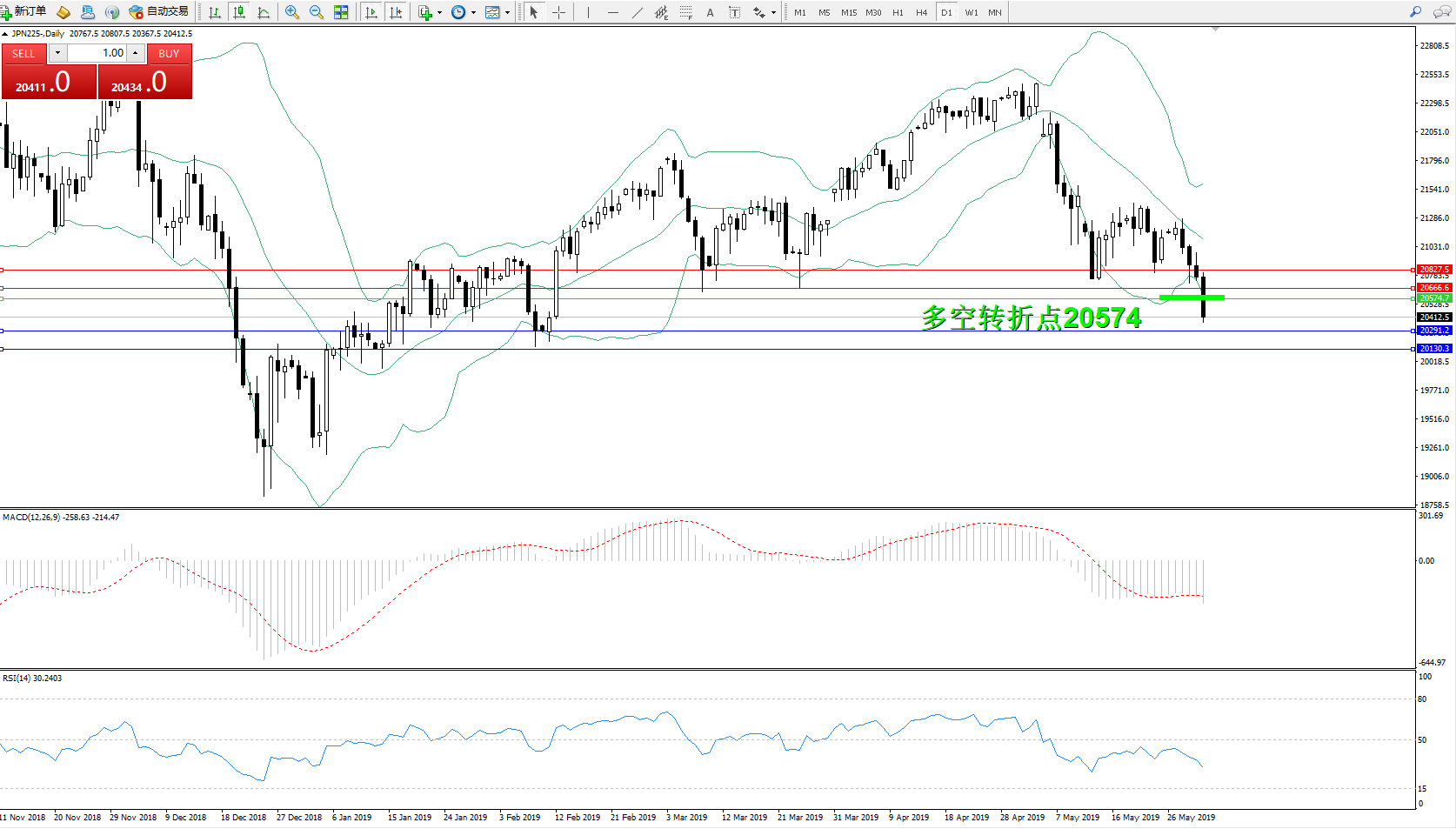 交易策略:20574下方看跌,目标20291、20130