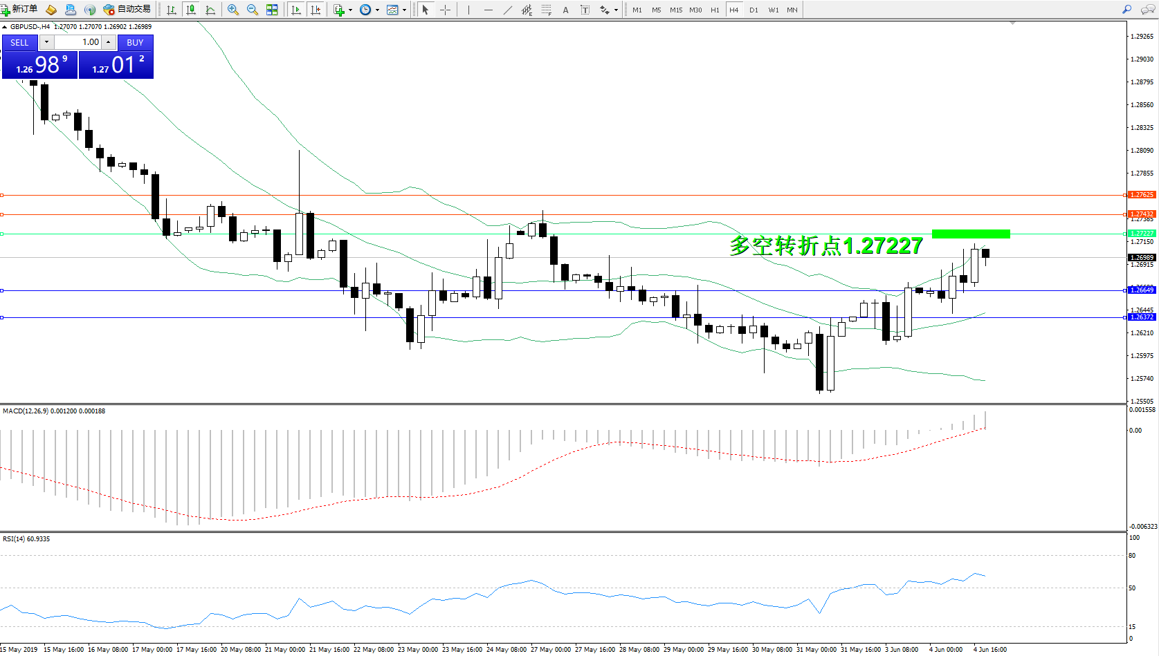 交易策略:1.27227下方看跌,目标1.26649、1.26372