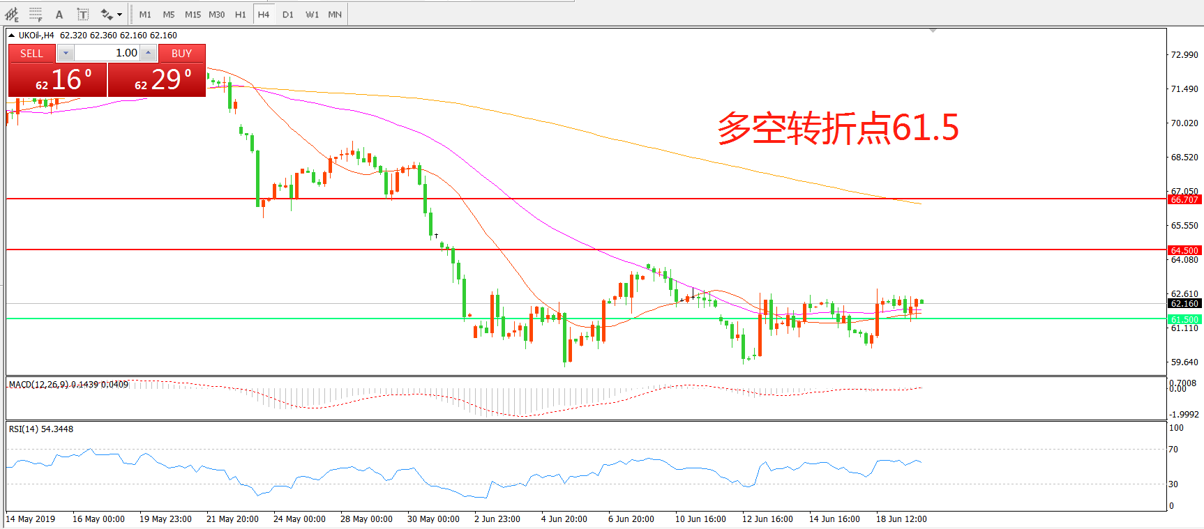 交易策略:在61.50之上看涨,目标64.50    66.70