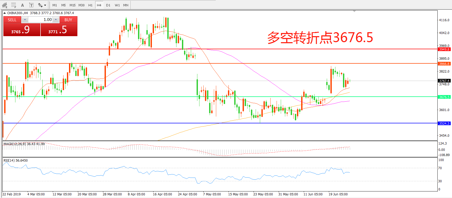 多空转折点:3676.50