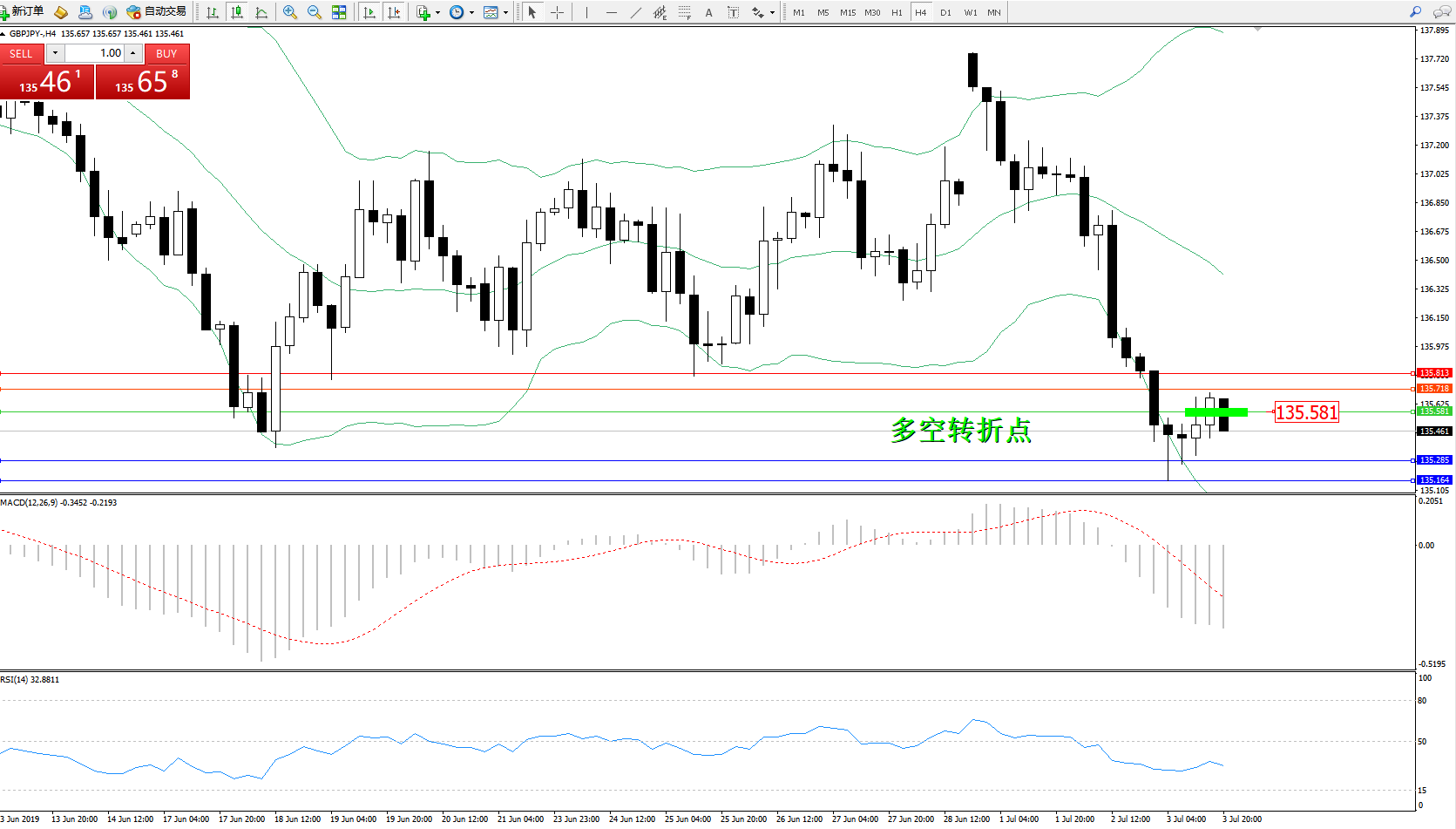 交易策略:135.581下方看跌,目标135.285135.164