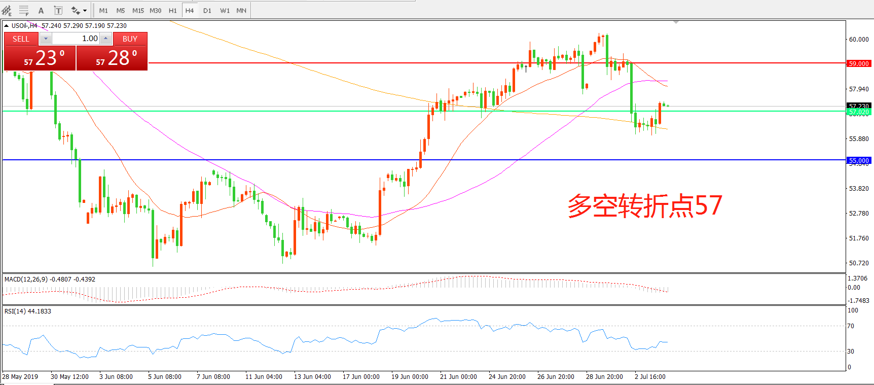 多空转折点:57.00