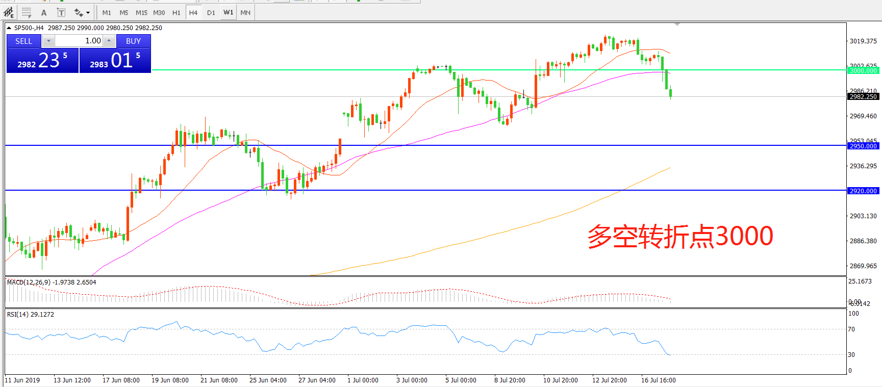 交易策略:在3000.00之下看跌,目标2950.00 2920.00