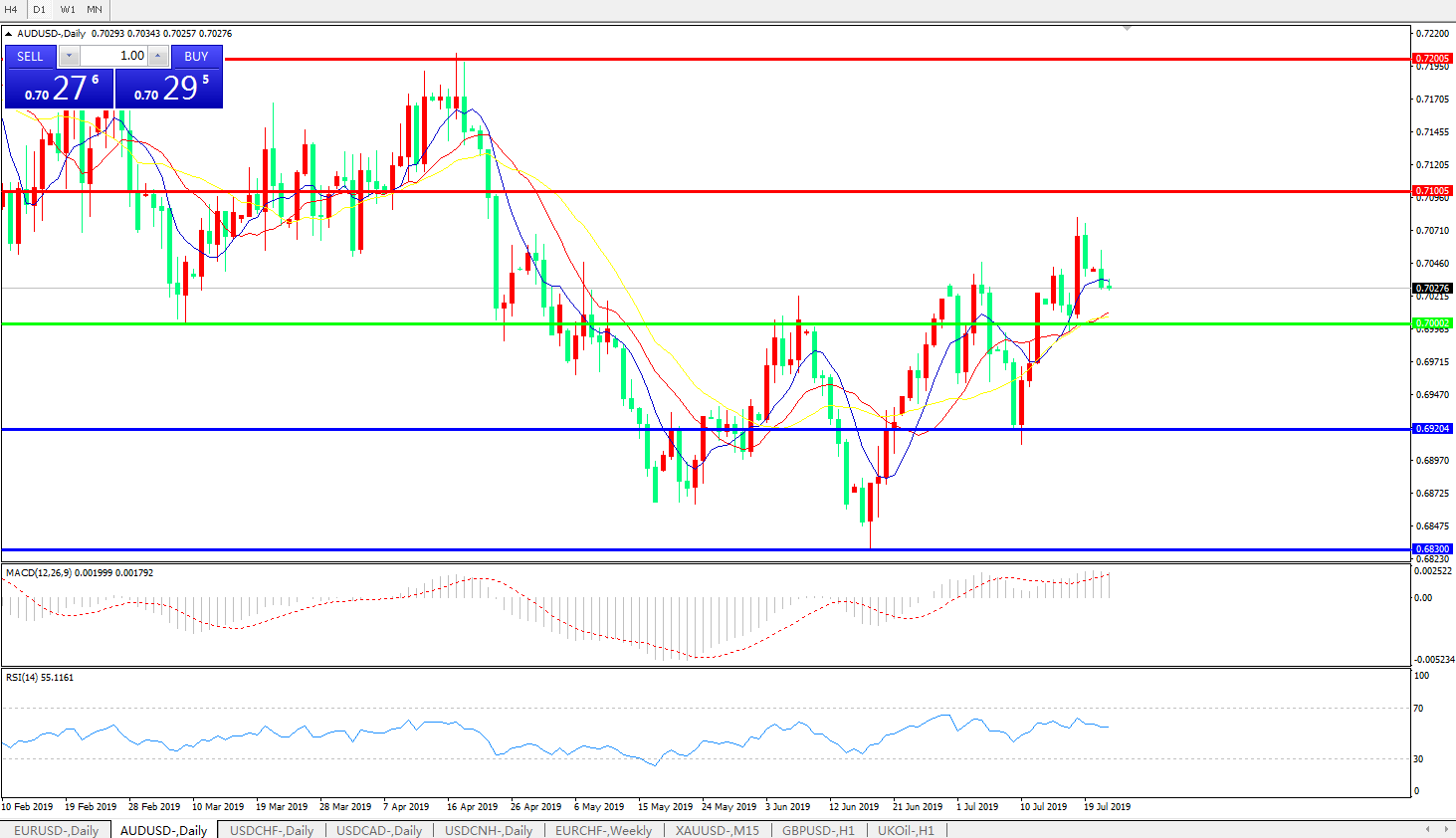 交易策略:0.7000上方看涨,目标0.7100、0.7200