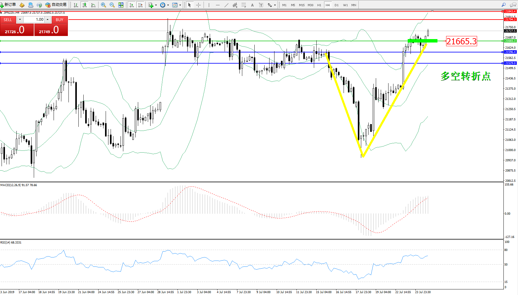 技术点评:低位V型反转态势良好,上方仍有上行空间,延续布林带指标中上轨区间持续上行,MACD指标多头区域上扬中,RSI指标多头区域维持震荡;