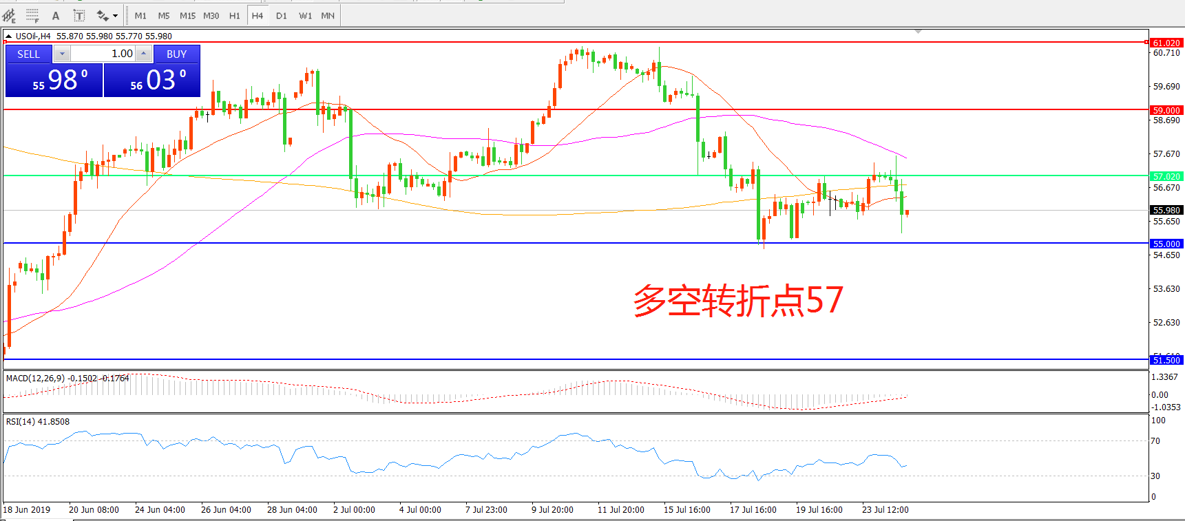 多空转折点:57.00