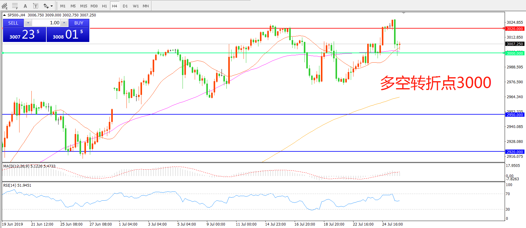 交易策略:在3000.00之上看涨,目标3020.00 3050.00