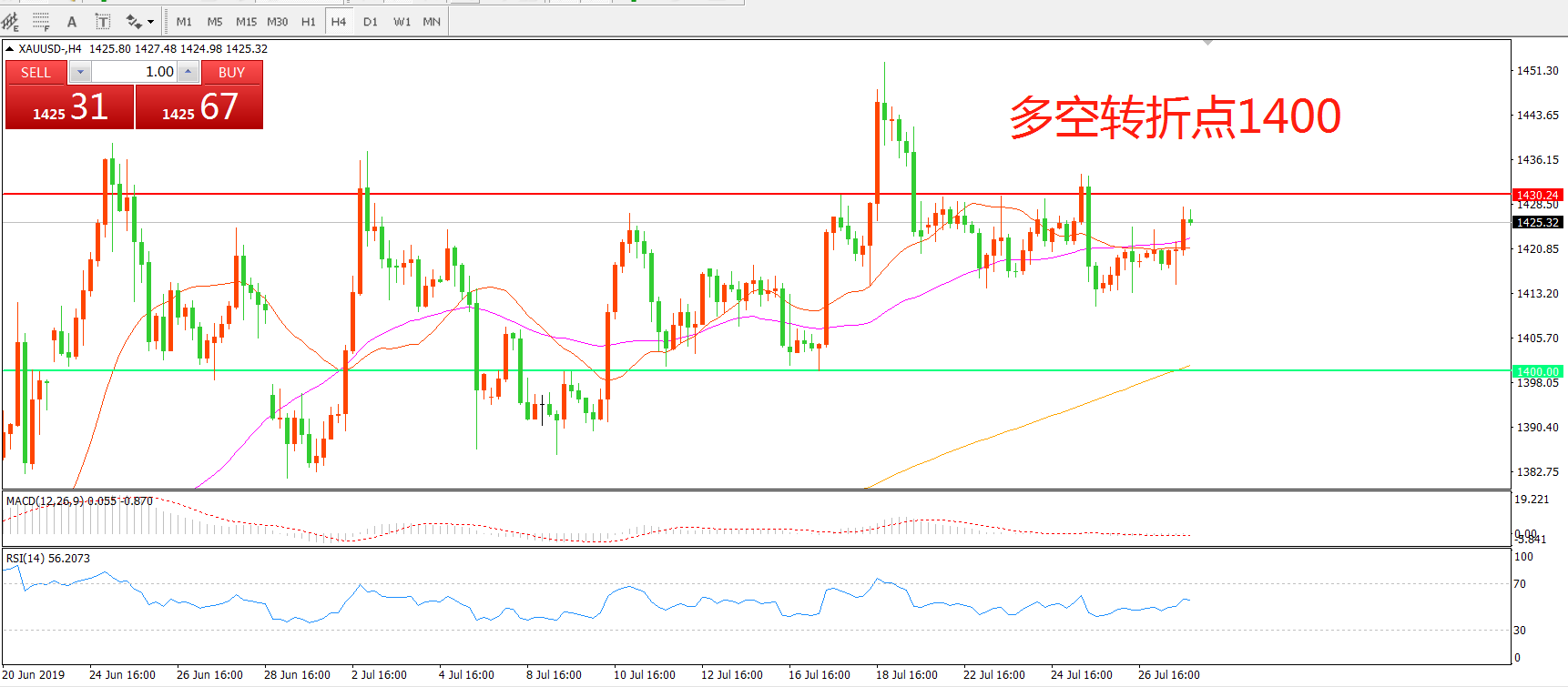 交易策略:在1400.00之上看涨,目标1430.00   1450.00