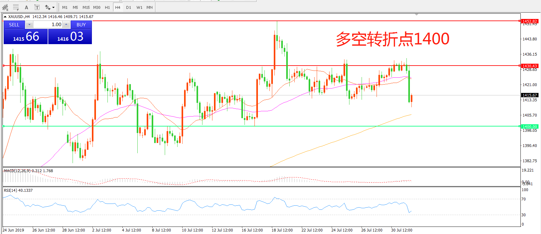 备选策略:在1400.00之下看跌,目标1373.00   1354.00