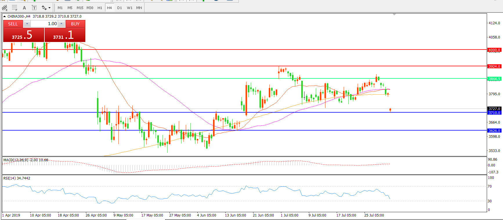 沪深300指数CHINA300 4小时图