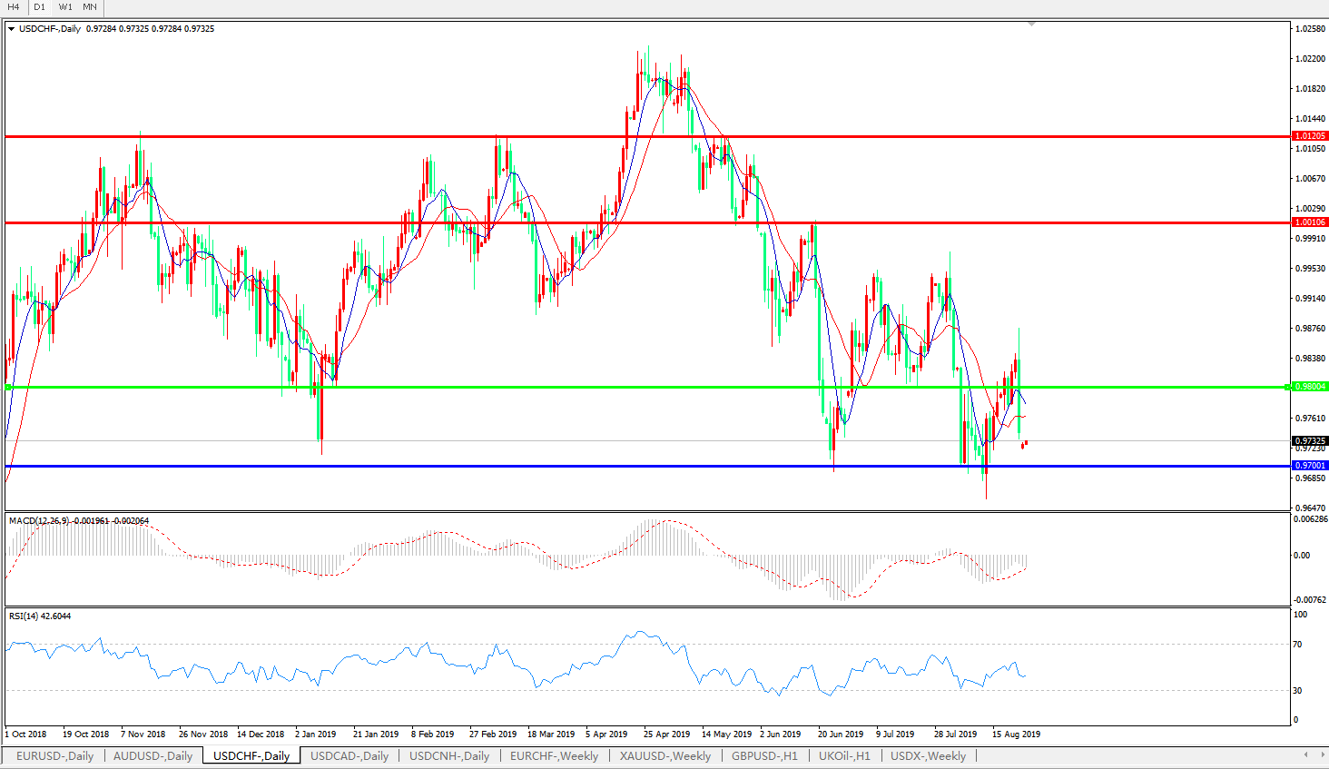 交易策略:0.9800下方看跌,目标0.9700、0.9542