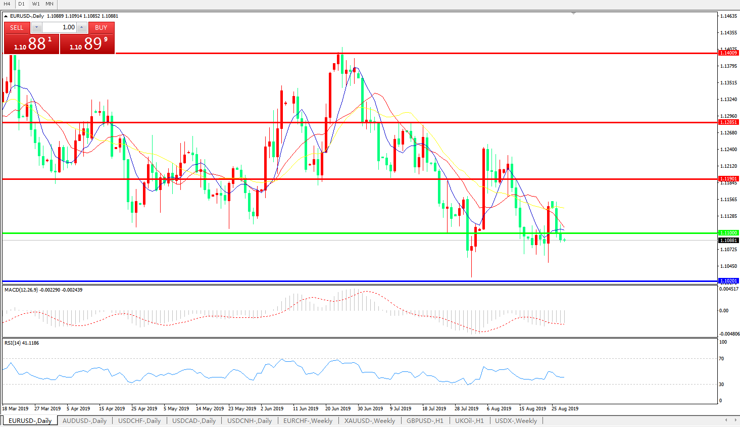 欧元兑美元EURUSD   日线: