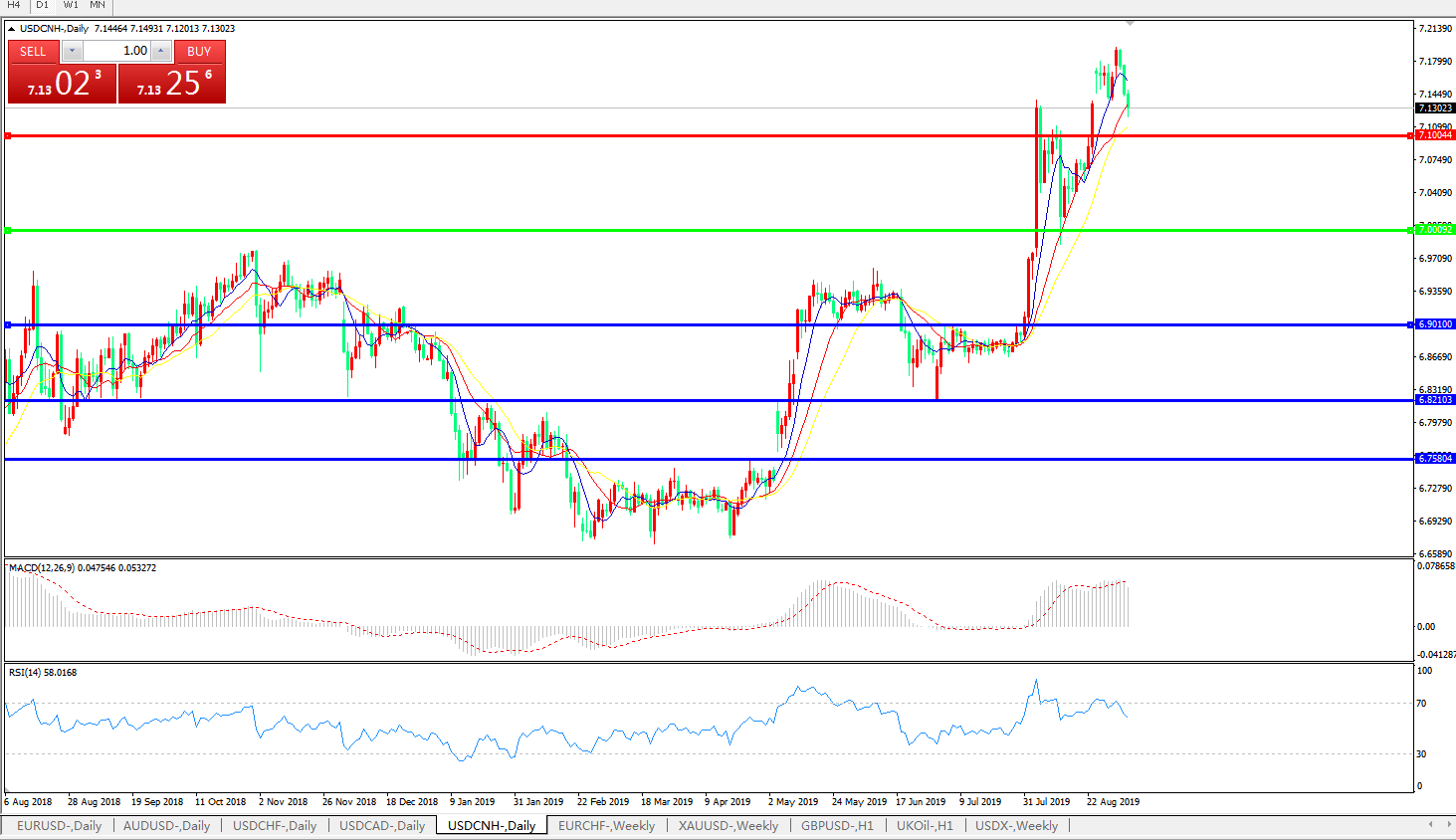 备选策略: 在7.0000之下,看跌,目标价位为6.9010,然后为6.8210。