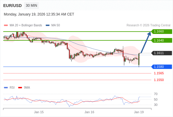 交易策略: 在 1.1580 之上,看涨,目标价位为 1.1640 ,然后为 1.1660 。