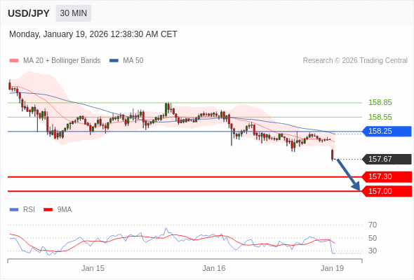 在 158.25 之下,看跌,目标价位为 157.30 ,然后为 157.00 。