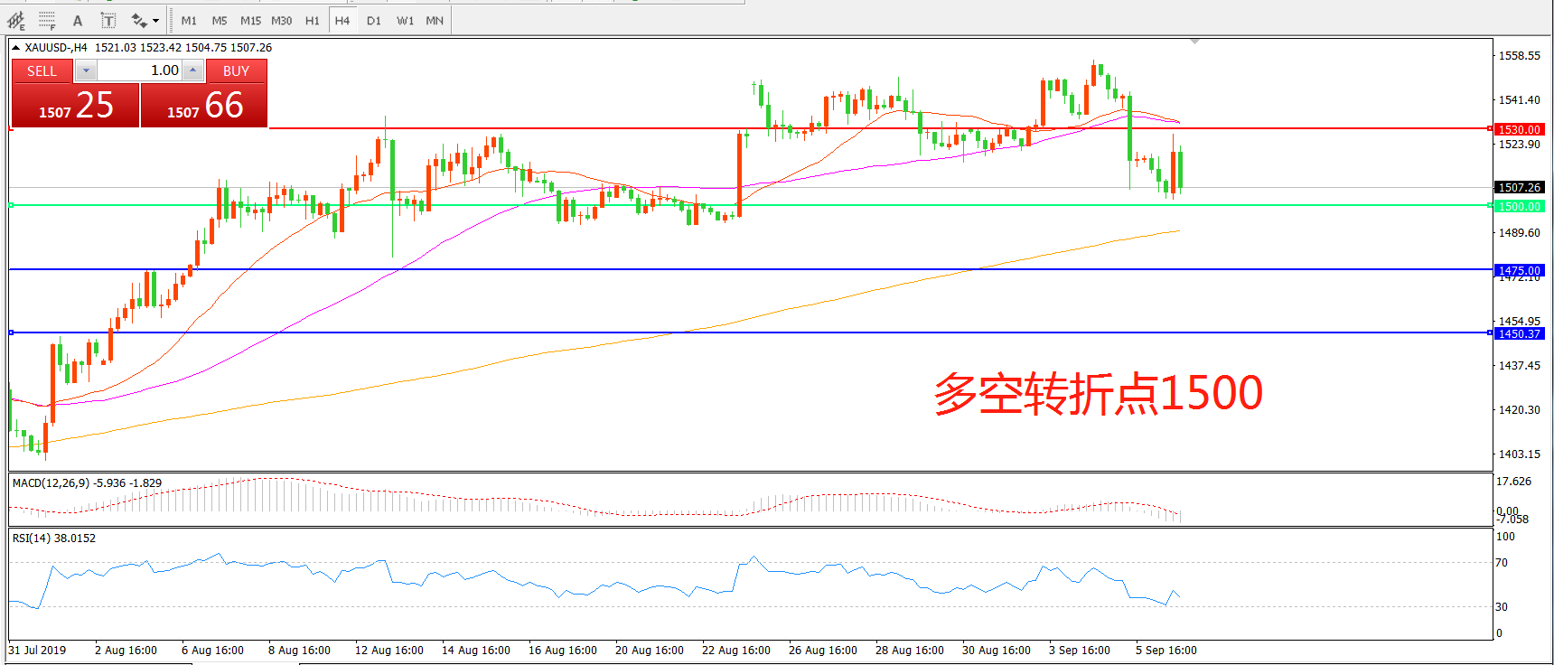 多空转折点:1500.00