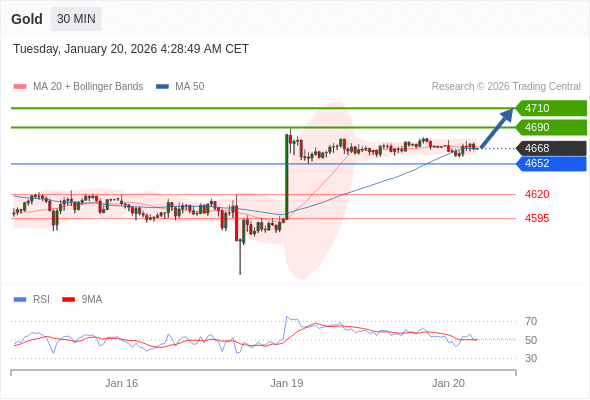 在 4652 之上,看涨,目标价位为 4690 ,然后为 4710 。
