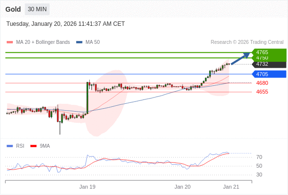 在 4705 之上,看涨,目标价位为 4750 ,然后为 4765 。