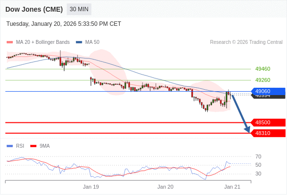 在 49060 之下,看跌,目标价位为 48500 ,然后为 48310 。