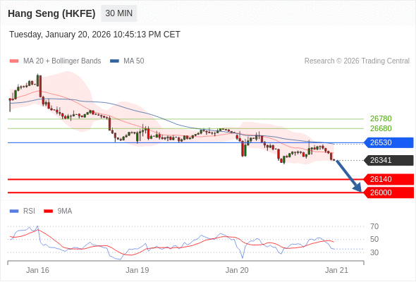 在 26530 之下,看跌,目标价位为 26140 ,然后为 26000 。