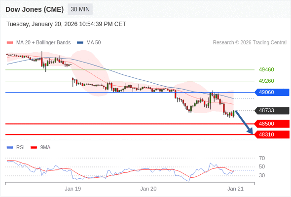 在 49060 之下,看跌,目标价位为 48500 ,然后为 48310 。
