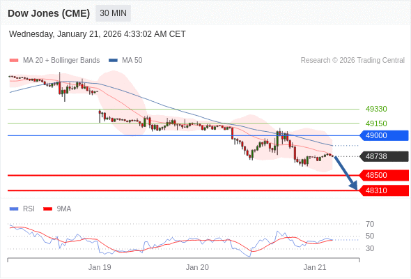 在 49000 之下,看跌,目标价位为 48500 ,然后为 48310 。