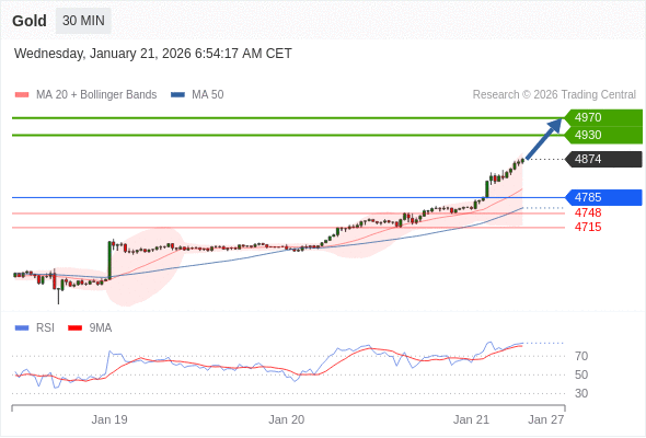 交易策略: 在 4785 之上,看涨,目标价位为 4930 ,然后为 4970 。