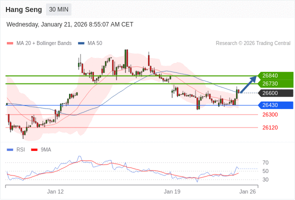 在 26430 之上,看涨,目标价位为 26730 ,然后为 26840 。