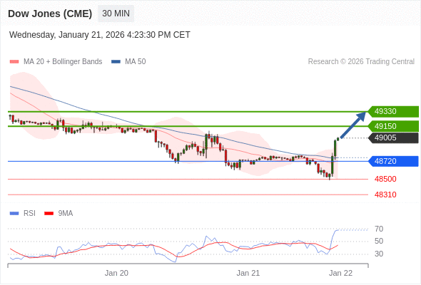 在 48720 之上,看涨,目标价位为 49150 ,然后为 49330 。