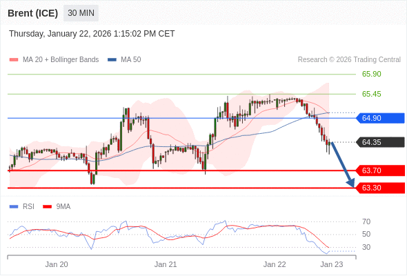 在 64.90 之下,看跌,目标价位为 63.70 ,然后为 63.30 。