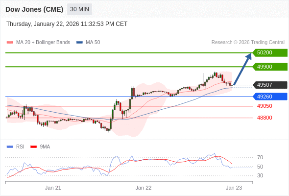在 49260 之上,看涨,目标价位为 49900 ,然后为 50200 。