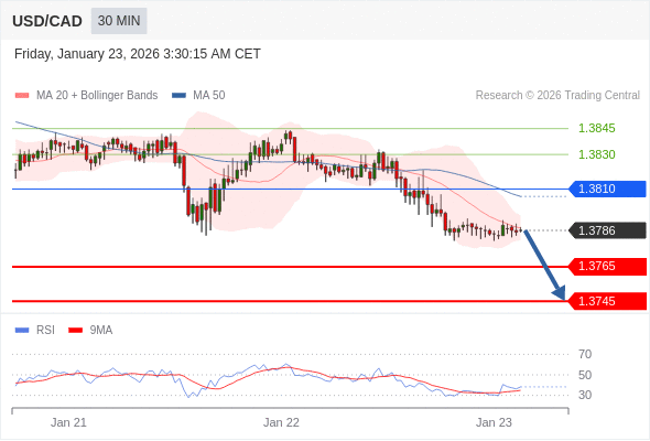 在 1.3810 之下,看跌,目标价位为 1.3765 ,然后为 1.3745 。
