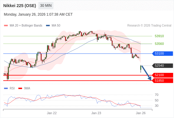 交易策略: 在 53100 之下,看跌,目标价位为 52100 ,然后为 51850 。