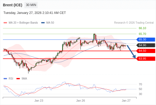在 65.30 之下,看跌,目标价位为 64.50 ,然后为 63.95 。