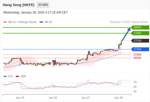 在 27240 之上,看涨,目标价位为 27800 ,然后为 28000 。
