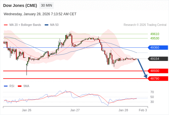 在 49360 之下,看跌,目标价位为 48930 ,然后为 48790 。