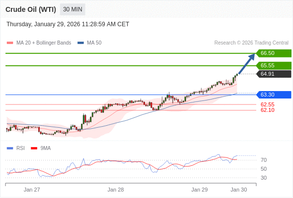 在 63.30 之上,看涨,目标价位为 65.55 ,然后为 66.50 。