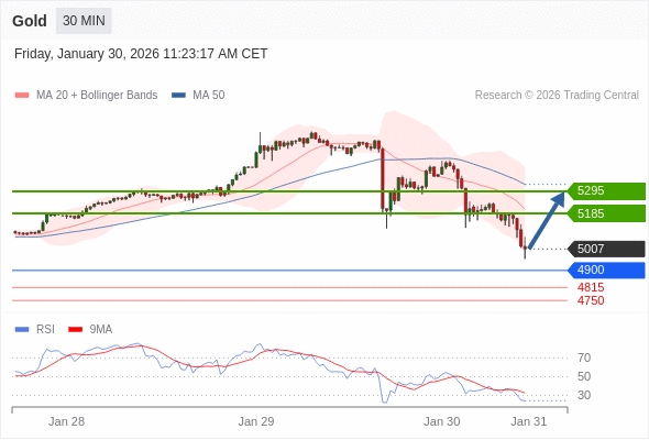 在 4900 之上,看涨,目标价位为 5185 ,然后为 5295 。