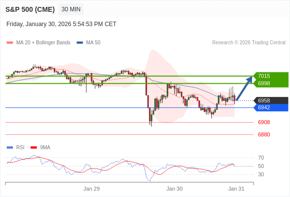 交易策略: 在 6942 之上,看涨,目标价位为 6998 ,然后为 7015 。