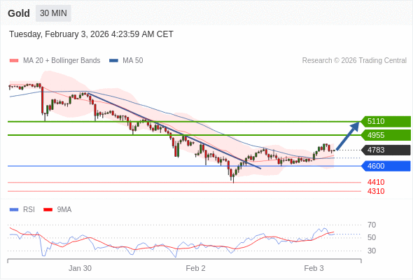 在 4600 之上,看涨,目标价位为 4955 ,然后为 5110 。