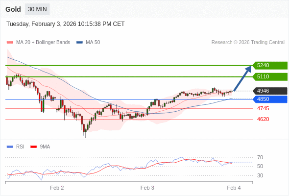在 4850 之上,看涨,目标价位为 5110 ,然后为 5240 。