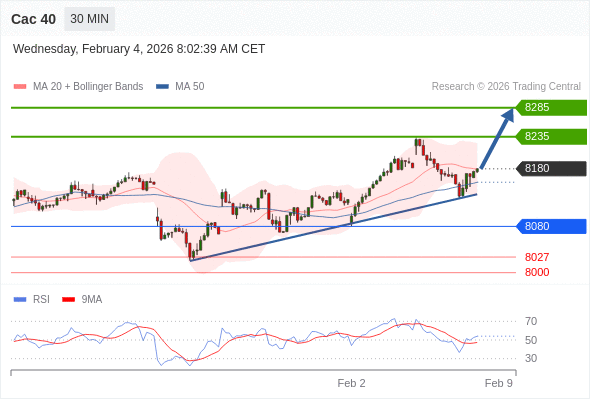 Cac 40 当日内: 超短线(当日内)支撑位在8080附近。